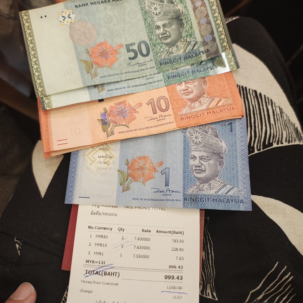 1000バーツ両替して、131リンギット