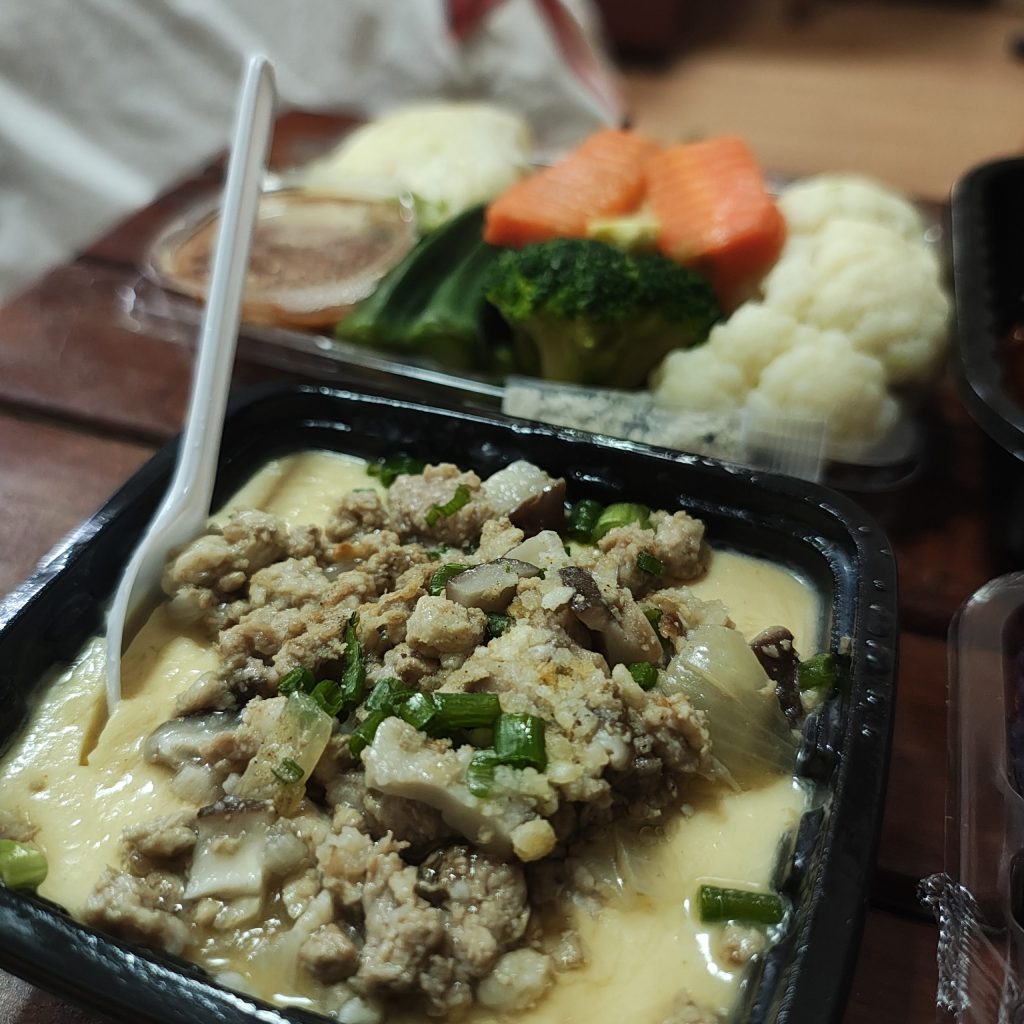 左下 鶏ひき肉炒めを乗っけた茶碗蒸し
