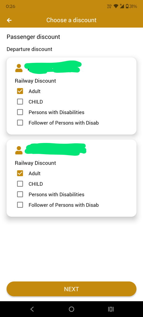 席を選んだら、下にあるNEXTを押しましょう