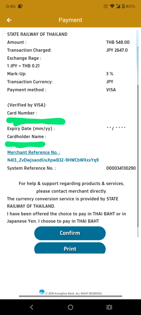 って、分からないけどタイバーツ決済を選択しました!